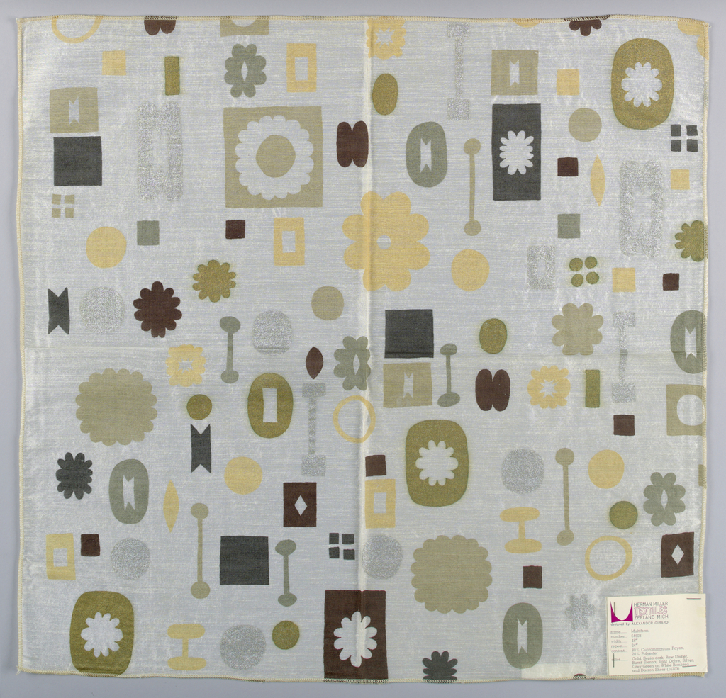 Textile Sample, Multiform; Designed by Alexander Hayden Girard (American, 1907–1993); Produced by Herman Miller Furniture Company (United States); Manufactured by American Art Textile Printing Company, Inc.; cotton; Warp: 23.35 in. Weft: 24 in.; Gift of Alexander H. Girard; 1969-165-1347
