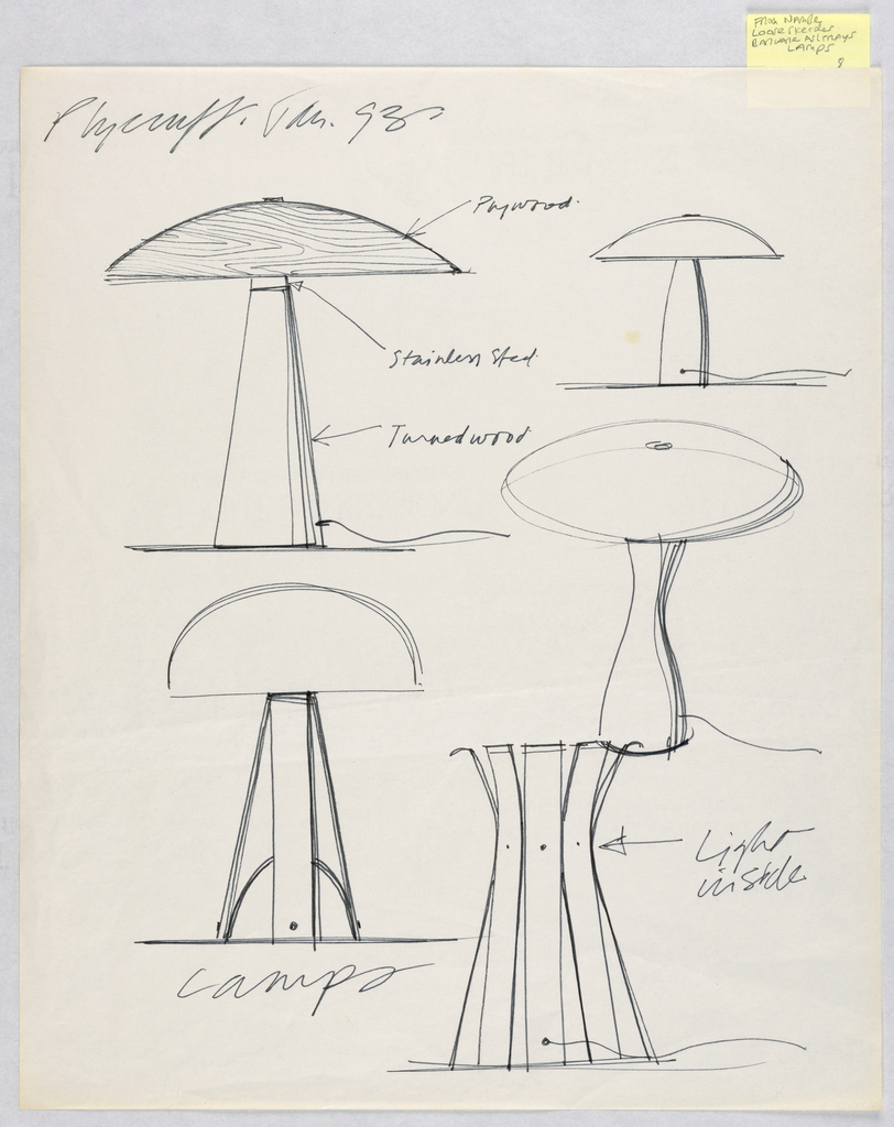 <ref name=CH>{{cite web |url=https://www-6.collection.cooperhewitt.org/objects/18690109/ |title=Drawing, Five Table Lamp Designs, for Plycraft |author=Cooper Hewitt, Smithsonian Design Museum |accessdate=19 December 2025 |publisher=Smithsonian Institution}}</ref>