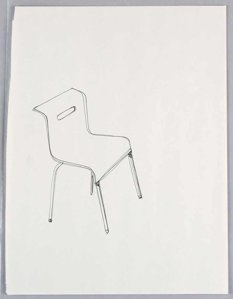 Drawing, Design for Decolar Project Stacking Chair, for IDEE Japan; Designed by Karim Rashid (Canadian, b. Egypt, 1960); Made for Idée (Japan); rollerball pen in black ink on white paper; 35.6 x 27.3 cm (14 x 10 3/4 in. ); Gift of Karim Rashid; 2000-50-15
