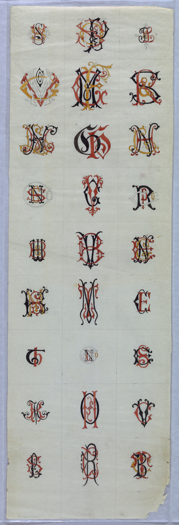 <ref name=CH>{{cite web |url=https://www-6.collection.cooperhewitt.org/objects/18692169/ |title=Drawing, Sheet of 27 Monograms |author=Cooper Hewitt, Smithsonian Design Museum |accessdate=19 December 2025 |publisher=Smithsonian Institution}}</ref>