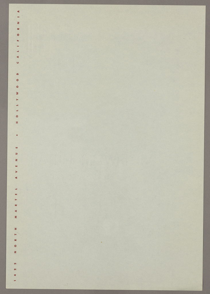 Letterhead, CS 1422 North Martel Avenue Hollywood California