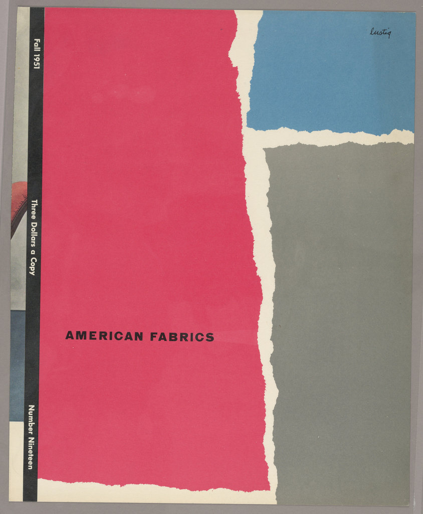 Printed in black ink, lower left: AMERICAN FABRICS. Printed vertically in white ink, left margin: Fall 1951 Three Dollars a Copy Number Nineteen.