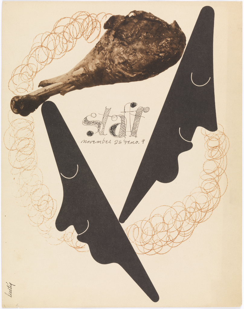This is a Magazine Cover. It was graphic design by Alvin Lustig. It is dated 1944 and we acquired it in 2001. Its medium is lithograph on heavy paper. It is a part of the Drawings, Prints, and Graphic Design department.