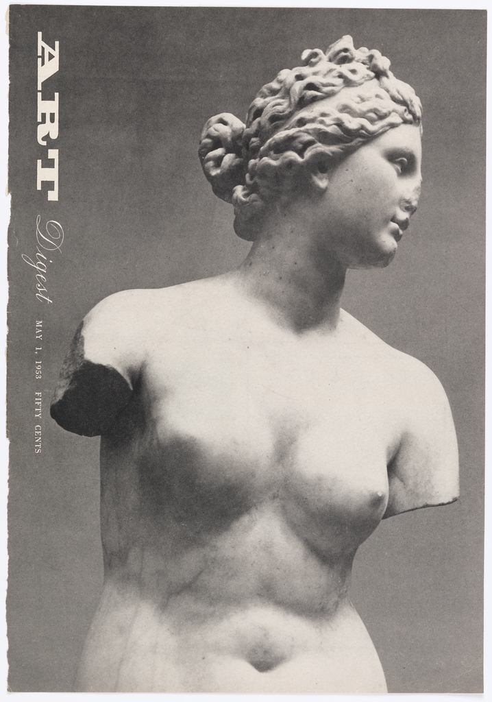 Printed vertically in white ink, lfet margin: ART Digest MAY 1, 1953 FIFTY CENTS.