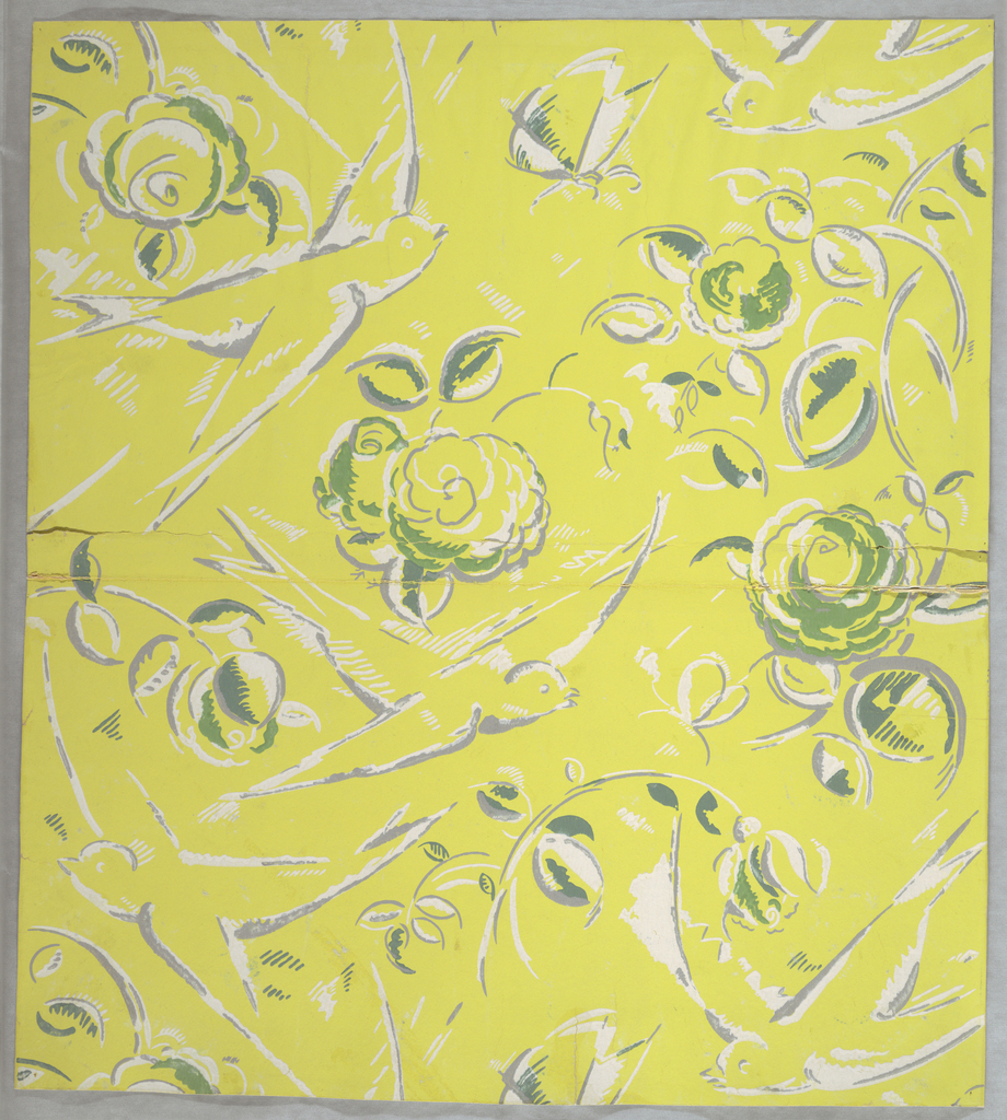 This is a Sidewall. It was designed by Paul Vera. It is dated 1921–1922 and we acquired it in 1930. Its medium is machine-printed paper. It is a part of the Wallcoverings department.