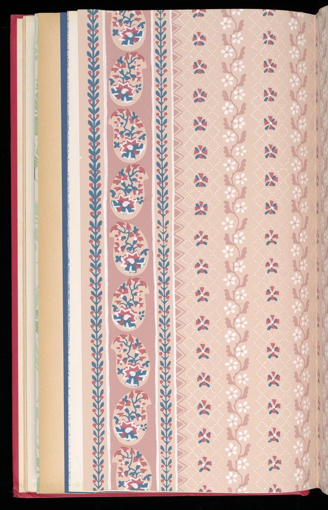 This is a Sample book. It was distributed by Nancy McClelland. It is dated ca. 1970 and we acquired it in 1998. Its medium is screen printed on paper. It is a part of the Wallcoverings department.