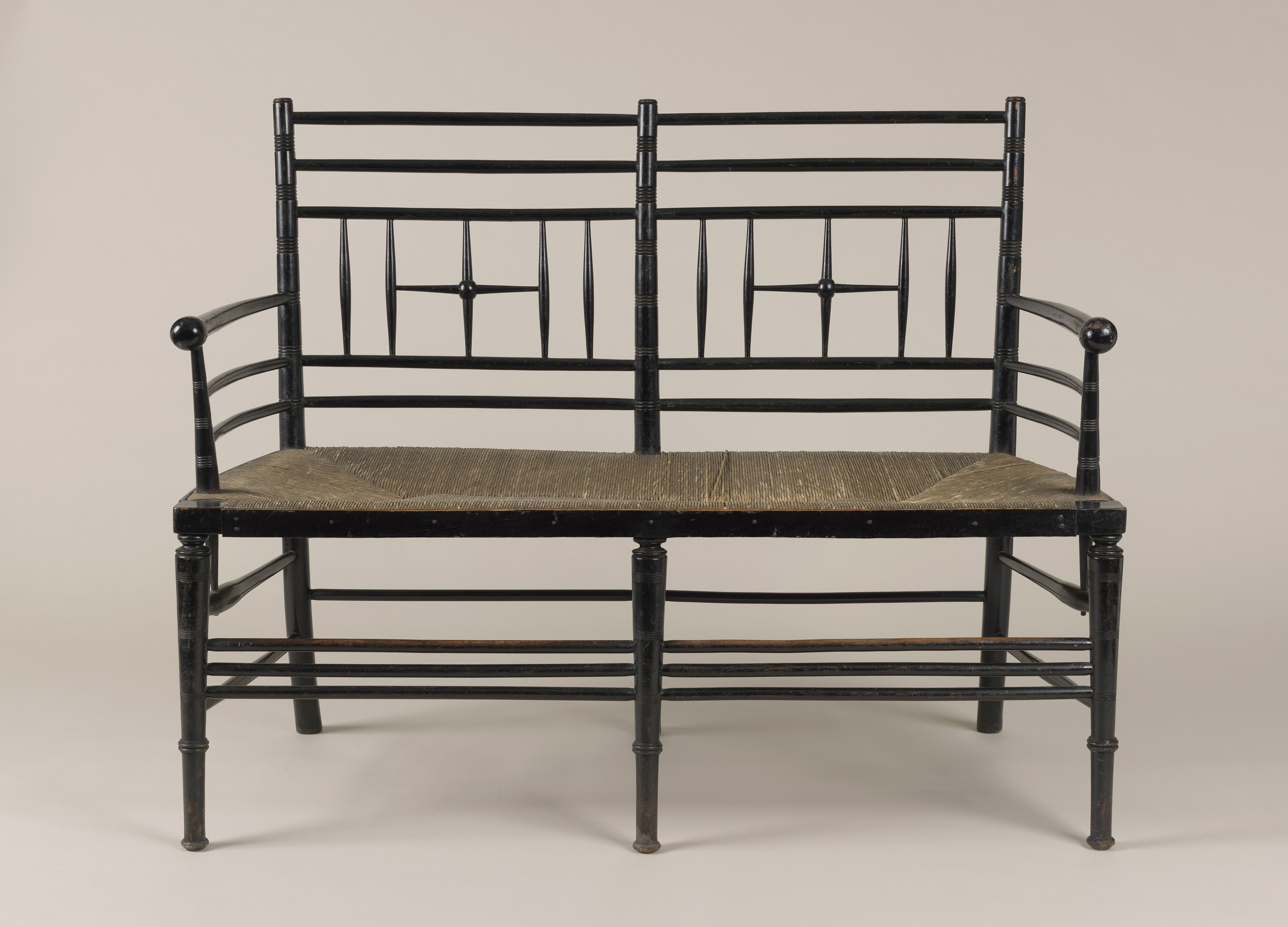 Sussex Settee; Attributed to Ford Madox Brown; Manufactured by Morris & Co. (United Kingdom); England; ebonized wood, rush; Overall: 94 x 119.5 x 56 cm (37 x 47 1/16 x 22 1/16 in.); Gift of Arthur Sanderson & Sons, Ltd.; 2004-29-1