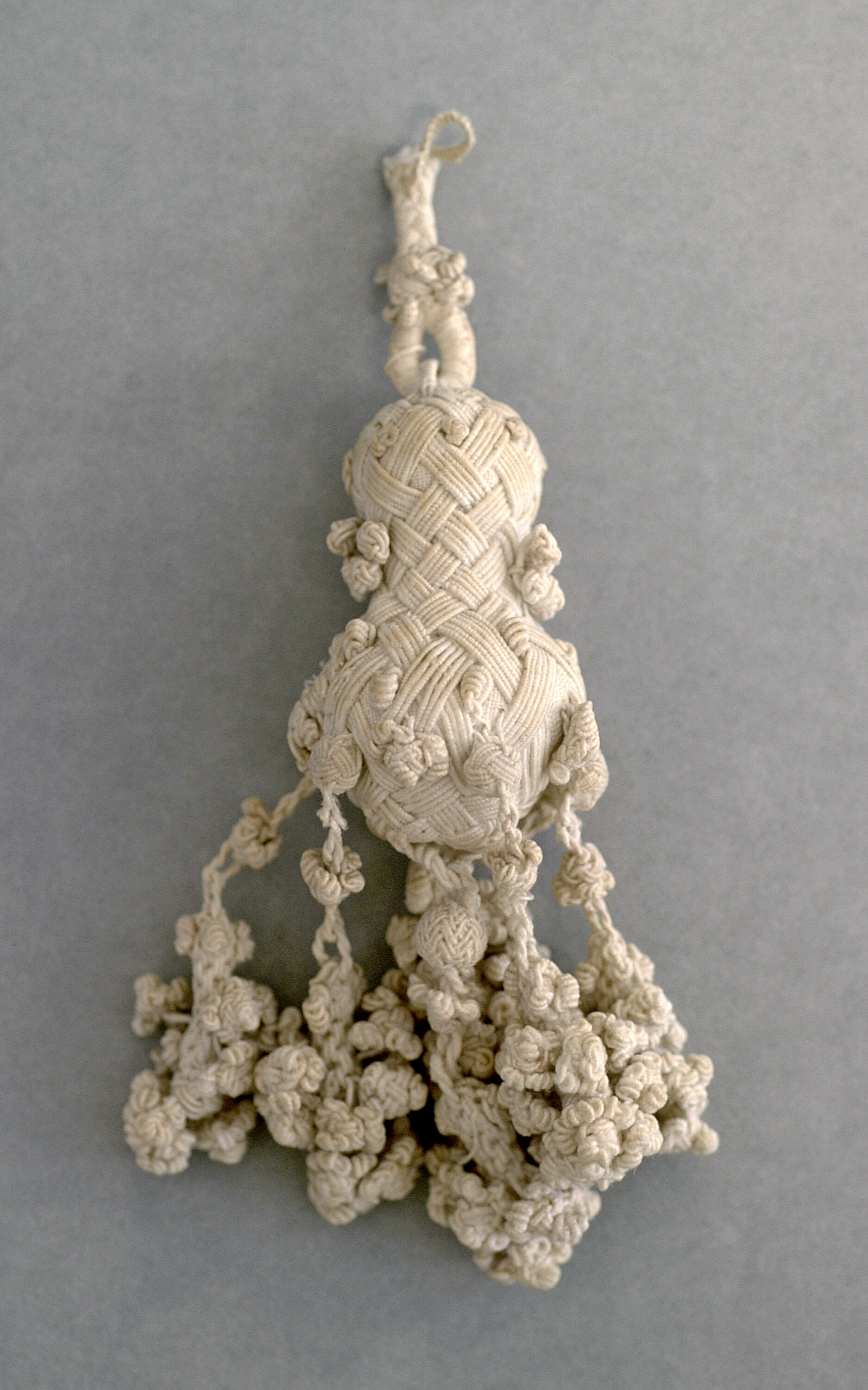 This is a Tassel. It is dated 17th century and we acquired it in 1962. Its medium is linen, wood and its technique is braided. It is a part of the Textiles department.