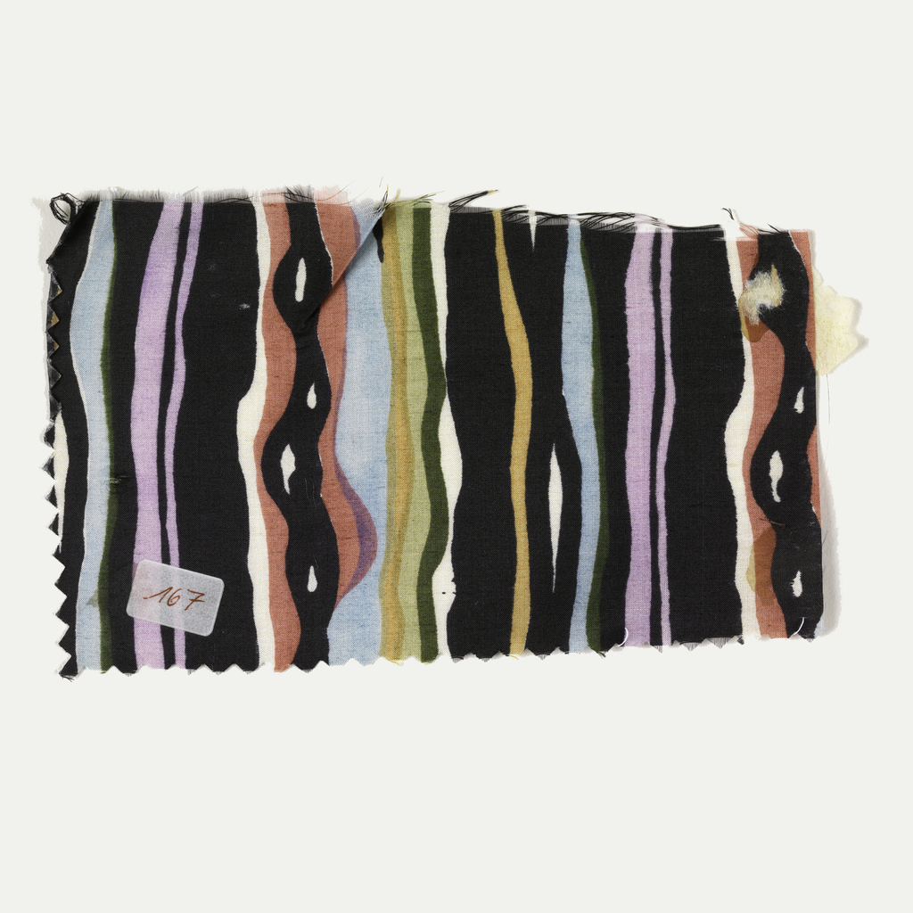 This is a Textile. It was designed by Leopold Blonder and made for Wiener Werkstätte. It is dated 1912–17 and we acquired it in 2005. Its medium is silk and its technique is block printed on plain weave. It is a part of the Textiles department.