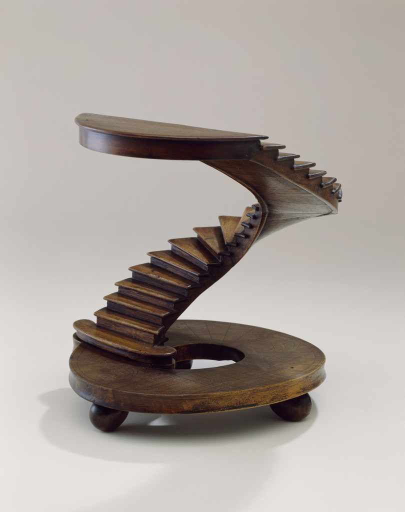 This is a staircase model. It is dated mid–late 19th century and we acquired it in 2007. Its medium is walnut. It is a part of the Product Design and Decorative Arts department.