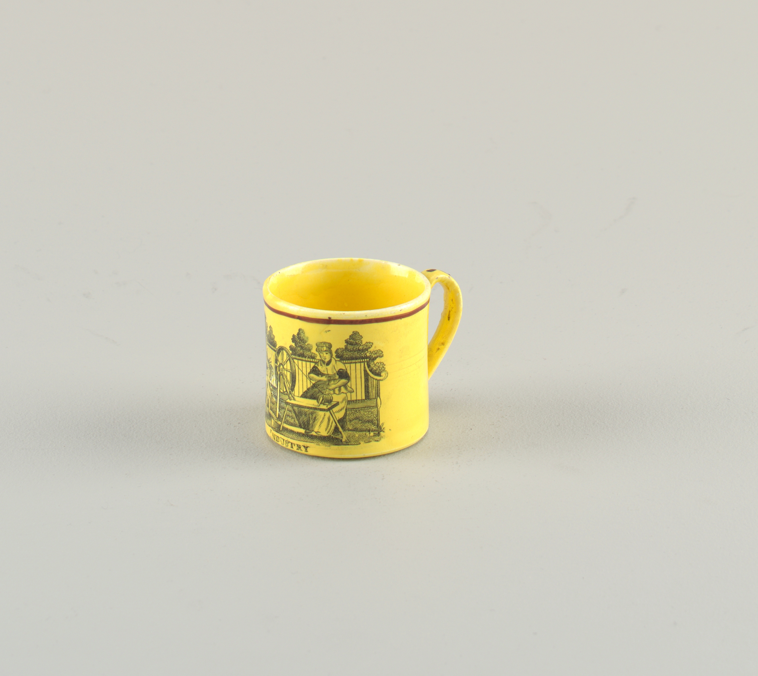 This is a Mug. It is dated 18th–mid-19th century and we acquired it in 2006. Its medium is black transfer. It is a part of the Product Design and Decorative Arts department.