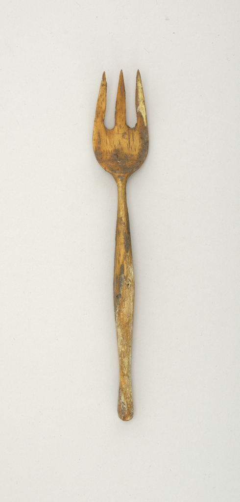 This is a Salad/desert fork. It was designed by Donald A. Wallance. It is dated mid-20th century and we acquired it in 1991. It is a part of the Product Design and Decorative Arts department.