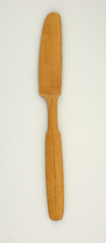 This is a Dinner knife. It was designed by Donald A. Wallance. It is dated mid-20th century and we acquired it in 1991. Its medium is pine ?. It is a part of the Product Design and Decorative Arts department.