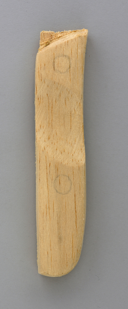 This is a handle. We acquired it in 1991. Its medium is wood. It is a part of the Product Design and Decorative Arts department.