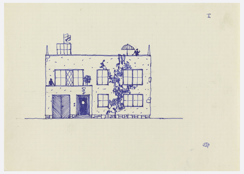 This is a Drawing. It was architect: Josef Hoffmann. It is dated 1950s and we acquired it in 2008. Its medium is pen and blue ink, graphite on graph paper. It is a part of the Drawings, Prints, and Graphic Design department.