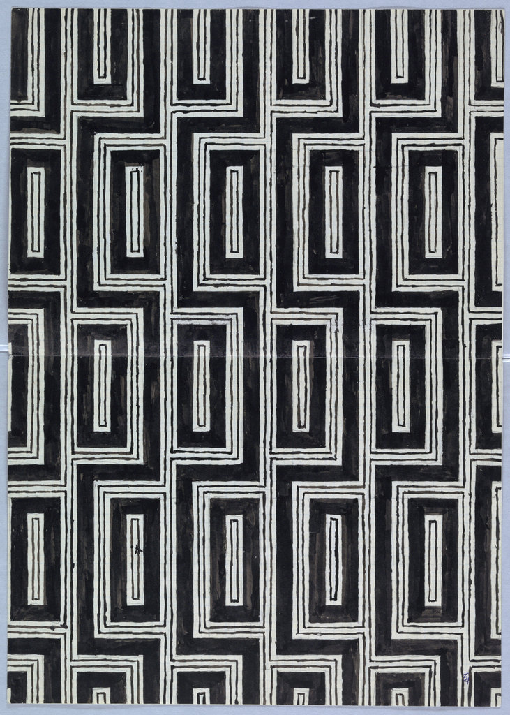 Drawing, Design for Textile; Designed by Josef Hoffmann (Austrian, b. Moravia, 1870–1956); Austria; brush and black gouache, graphite on graph paper, mounted on off-white wove paper; 29.7 x 41.7 cm (11 11/16 x 16 7/16 in.); Gift of Marilyn Walter Grounds; 2008-20-65