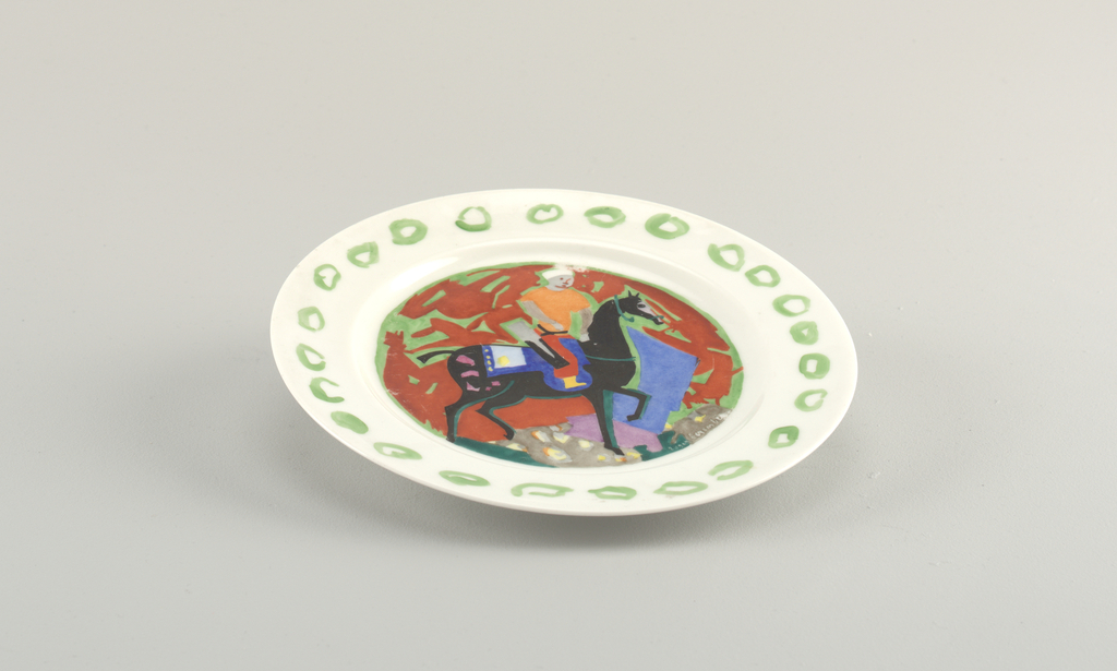 This is a plate. It was created by Jean Cocteau. It is dated ca. 1950 and we acquired it in 1976. Its medium is porcelain. It is a part of the Product Design and Decorative Arts department.