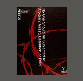 Poster, Article 09: No one should be Subjected to Arbitrary Arrest, Detention or Exile; Designed by Woody Pirtle (b. 1945); Client: Amnesty International (United States); offset lithograph on white wove paper; 61 x 45.7 cm (24 x 18 in.); Gift of Woody Pirtle; 2009-34-11