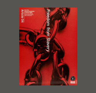 Poster, Article 04: Freedom from Slavery; Designed by Woody Pirtle (b. 1945); Client: Amnesty International (United States); offset lithograph on white wove paper; 61 x 45.7 cm (24 x 18 in.); Gift of Woody Pirtle; 2009-34-12