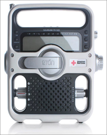 The Etón FR 600 radio is designed for use in emergency situations, when there is no access to power and external communication is vital to survival. In anticipation of a communication systems breakdown, the radio is designed with preventive measures in mind. It operates without batteries and its multiple functions include: walkie-talkie, cell phone charger, flashlight, siren, SOS light beacon, and multiband radio. The radio has been marketed as a consumer product for outdoor adventure, home safety, and as a tool for rescue workers.