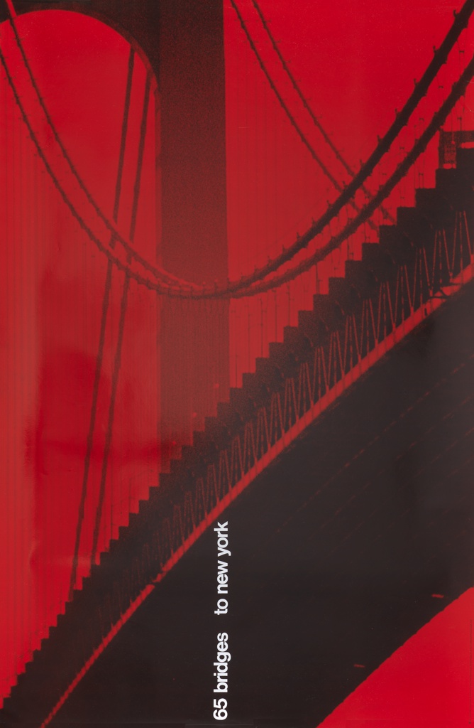 Poster, 65 Bridges of New York; Designed by Tomoko Miho (American, 1931–2012); Made for Center for Advanced Research in Design; Client: Container Corporation of America (United States); USA; photo-offset lithograph and screenprint on paper ; 115 x 75.2 cm (45 1/4 x 29 5/8 in.); Gift of Sara and Marc Benda; 2009-20-50
