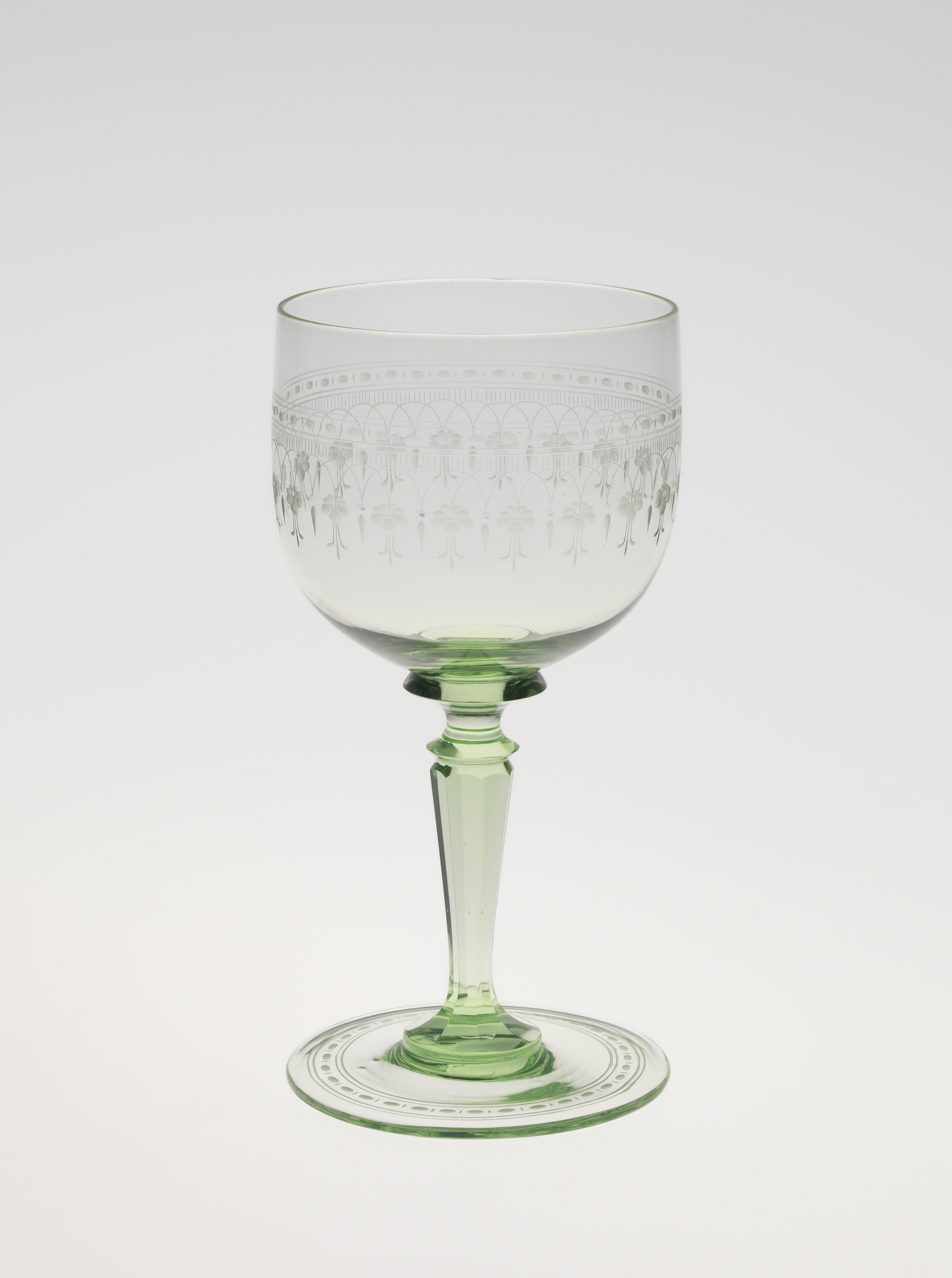 No. 168 Rhine Wine Glass; Designed by Ludwig Lobmeyr (Austrian, 1829 - 1917); Manufactured by J. & L. Lobmeyr GmbH (Austria); Austria; mouth-blown crystal, facet-cut and polished; H x diam.: 12.9 x 6.8 cm (5 1/16 x 2 11/16 in.); Museum purchase through gift of Dale and Doug Anderson, Anonymous Donor, Arthur Liu, and Prairie Pictures, Inc. and from General Acquisitions Endowment Fund; 2009-18-47