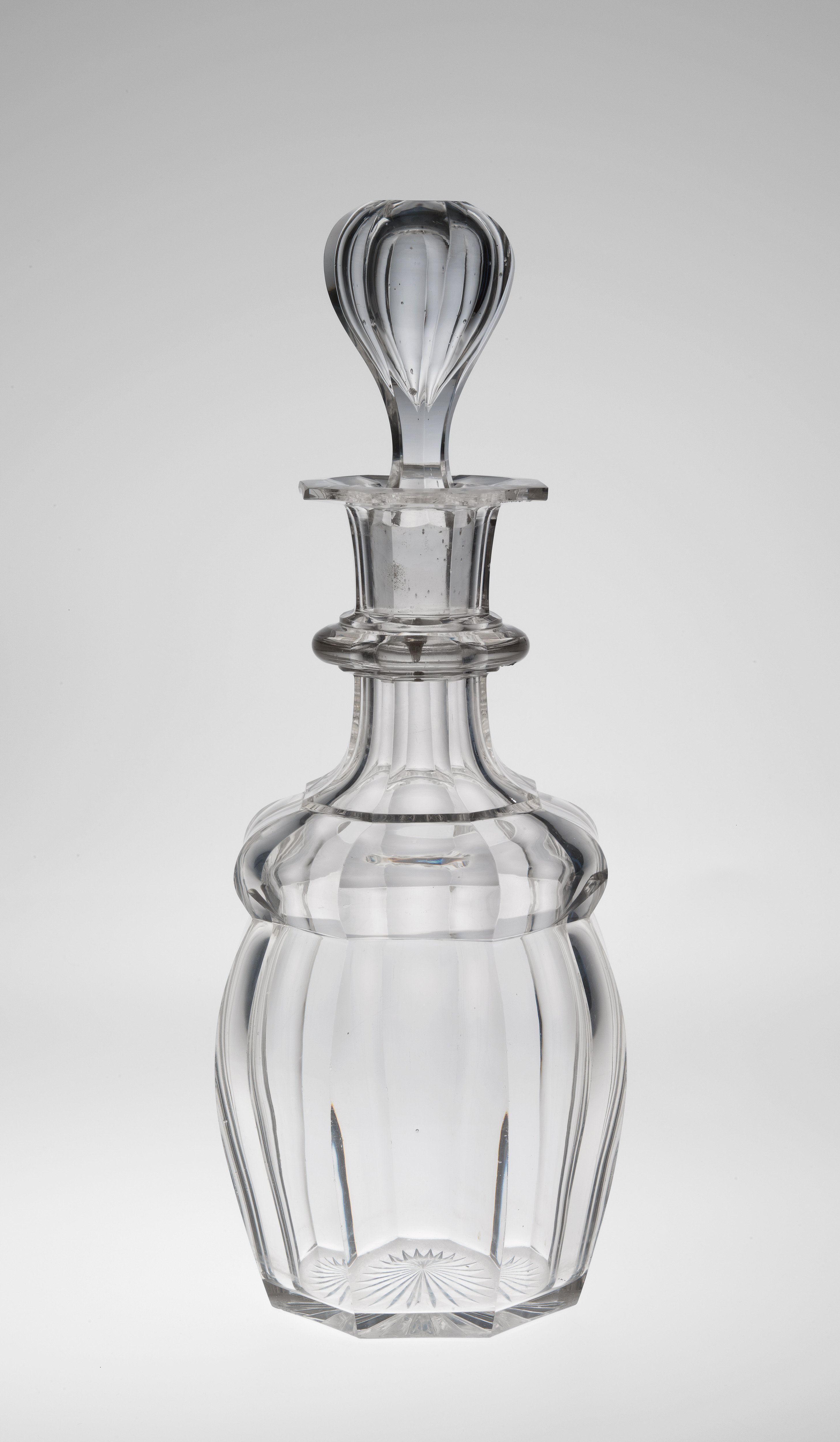 No. 30 Wine Decanter With Stopper; Designed by Josef Lobmeyr Senior; Manufactured by J. & L. Lobmeyr GmbH (Austria); Austria; mouth-blown crystal, broad-cut and polished facets; H x diam.: 32.5 x 12.8 cm (12 13/16 x 5 1/16 in.); Museum purchase through gift of Dale and Doug Anderson, Anonymous Donor, Arthur Liu, and Prairie Pictures, Inc. and from General Acquisitions Endowment Fund; 2009-18-6-a,b