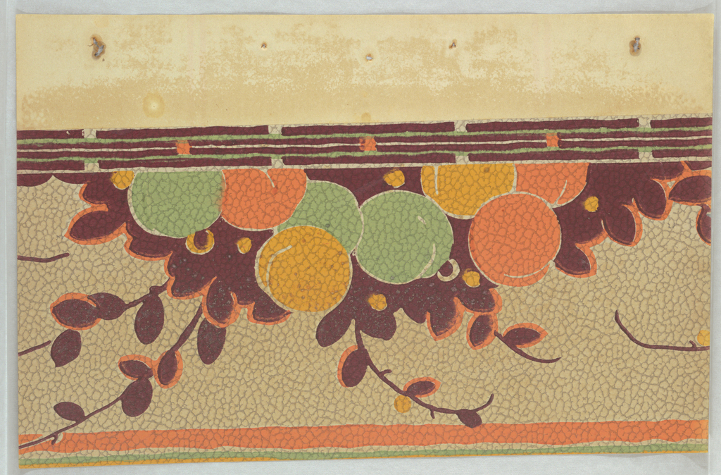 This is a Border. It was manufactured by J. Grantil Company. It is dated 1928–29 and we acquired it in 2010. Its medium is machine-printed on embossed paper. It is a part of the Wallcoverings department.