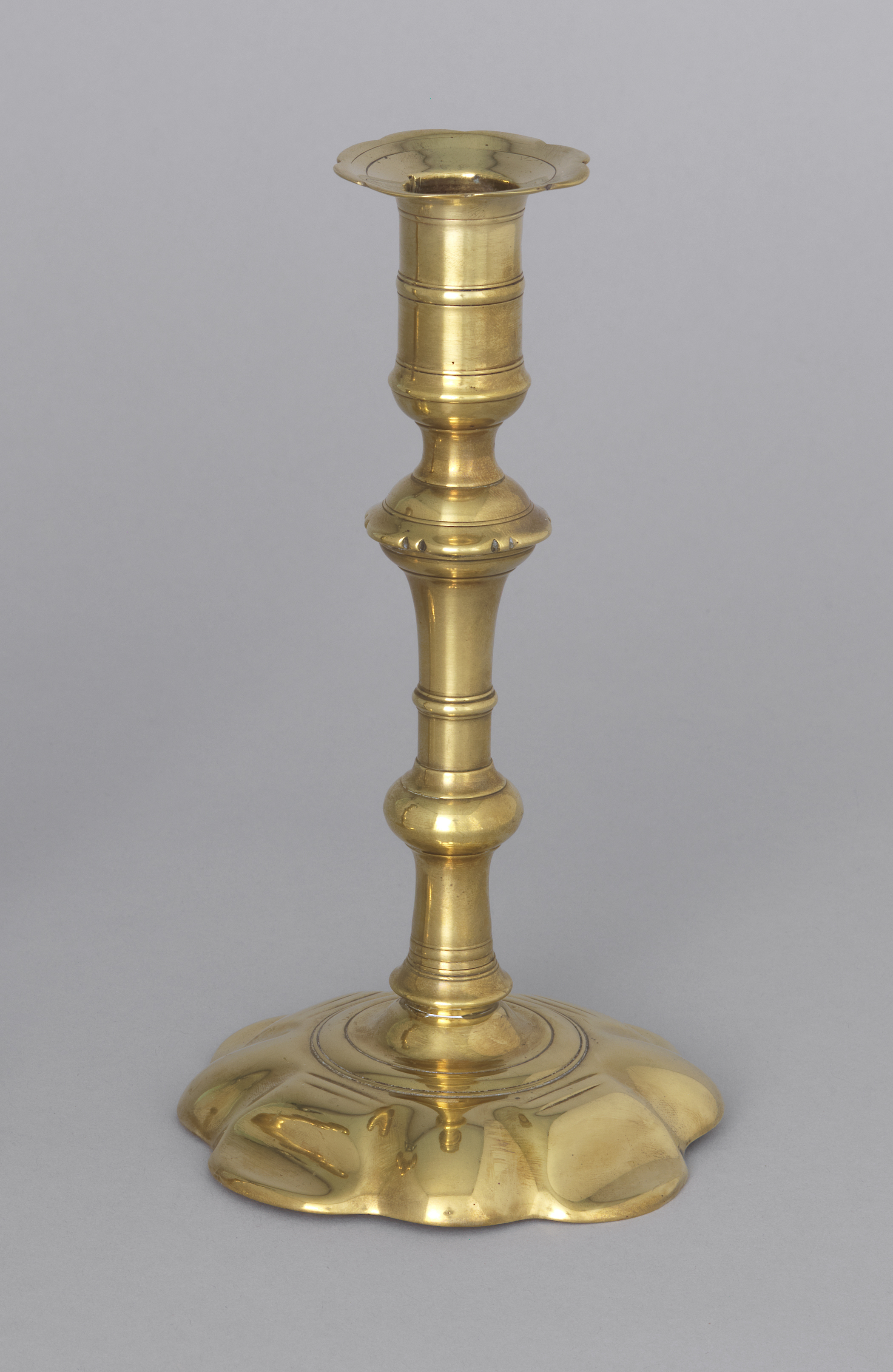 This is a candlestick. It is dated 1750–65 and we acquired it in 2011. Its medium is brass. It is a part of the Product Design and Decorative Arts department.