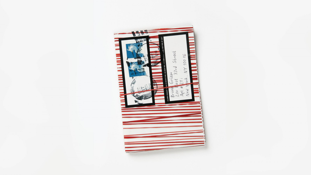 Poster, GSAPP Events Fall 2004; Designed by Matthias Ernstberger; Art Director: Stefan Sagmeister (Austrian, b. 1962); USA; offset lithograph on wove paper, folded, secured with rubber band; 15.2 x 7.6 cm (6 x 3 in.), folded; Gift of Stefan Sagmeister; 2011-34-3