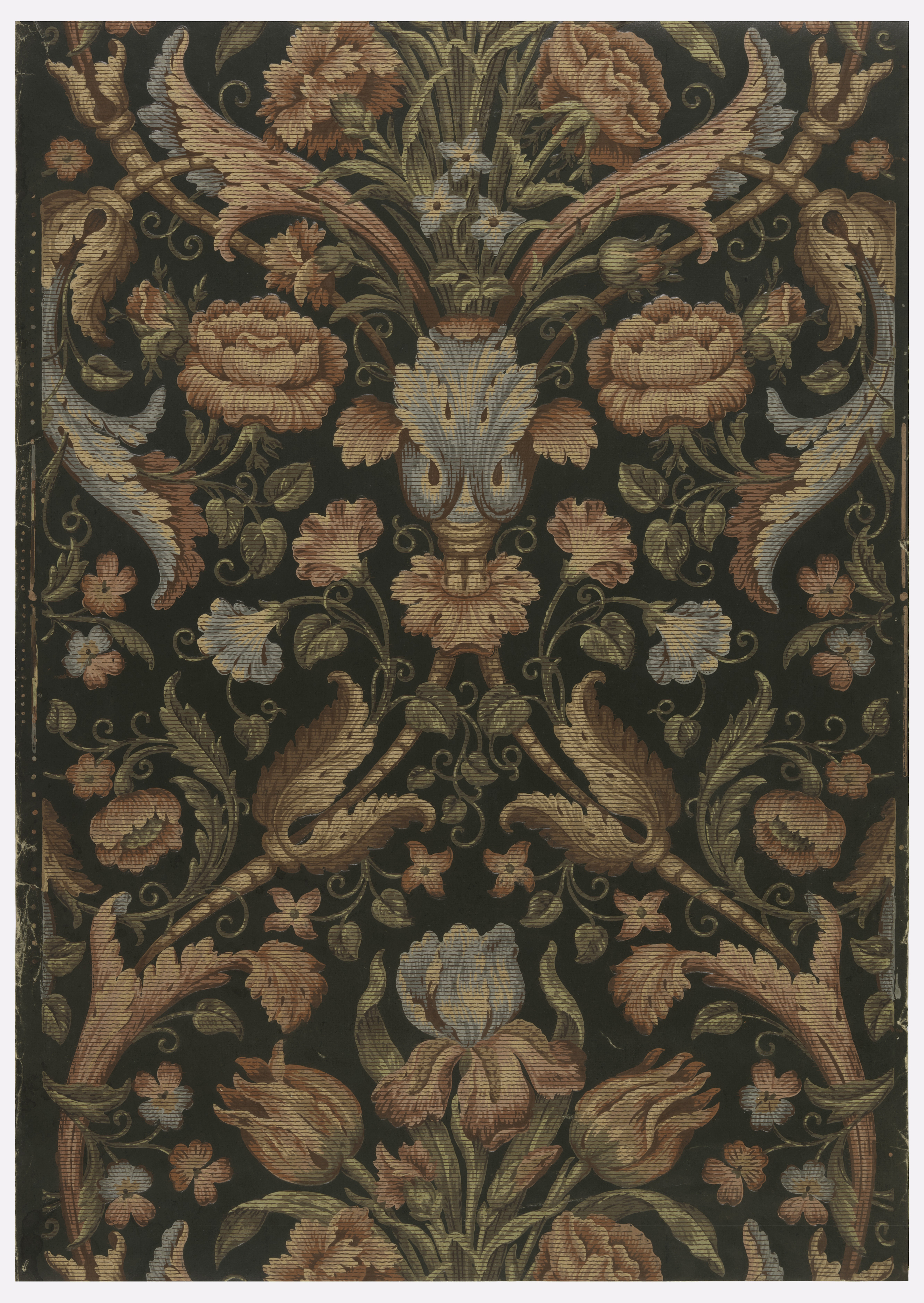 This is a Sidewall. It is dated 1880–1900 and we acquired it in 1981. Its medium is block-printed and embossed paper. It is a part of the Wallcoverings department.