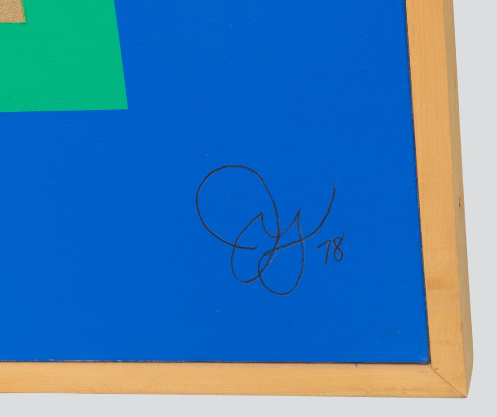 This is a folding screen. It was created by Jack Youngerman. It is dated 1978 and we acquired it in 1981. Its medium is oil and acrylic on raw linen, wood. It is a part of the Product Design and Decorative Arts department.