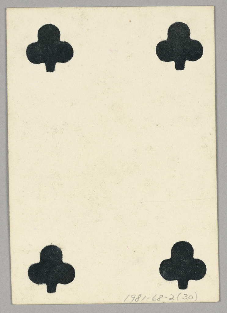 This is a Playing Card. We acquired it in 1981. It is a part of the Drawings, Prints, and Graphic Design department.