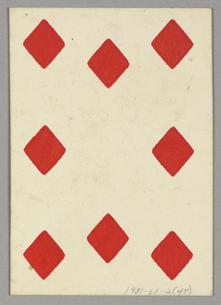 This is a Playing Card. We acquired it in 1981. It is a part of the Drawings, Prints, and Graphic Design department.
