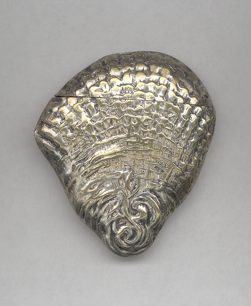 Oyster Shell Matchsafe; plated brass; 6 x 5.5 x 1.4 cm (2 3/8 x 2 3/16 x 9/16 in. ); Gift of Stephen W. Brener and Carol B. Brener; 1982-23-66