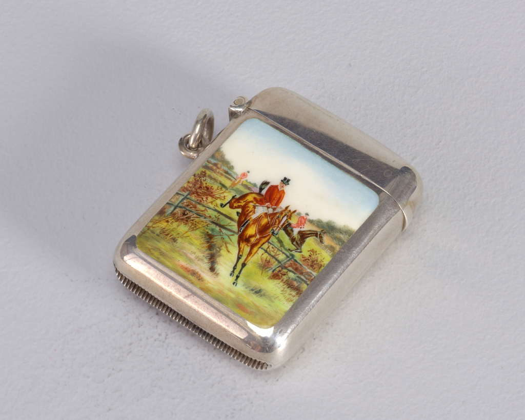 This is a Matchsafe. We acquired it in 1982. Its medium is silver. It is a part of the Product Design and Decorative Arts department.
