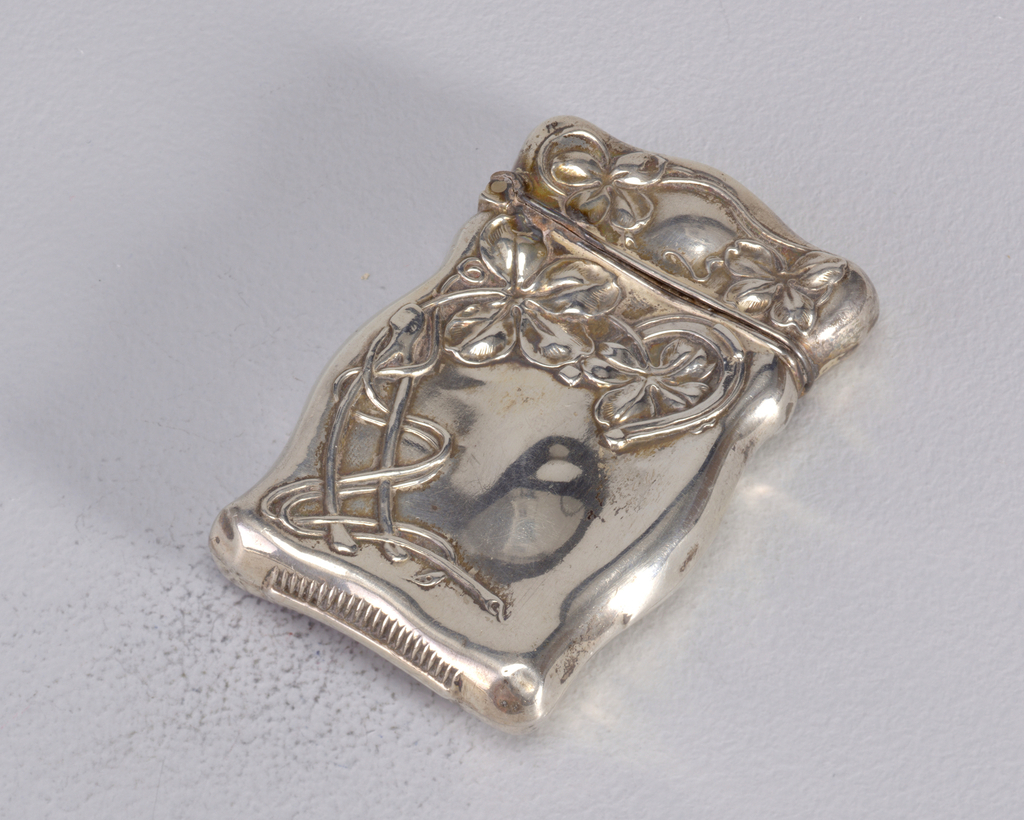 This is a Matchsafe. We acquired it in 1982. Its medium is silver. It is a part of the Product Design and Decorative Arts department.