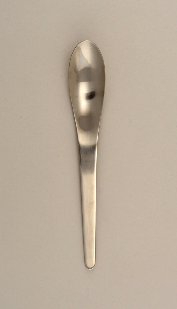 AJ pattern Spoon; Designed by Arne Jacobsen (Danish, 1902 – 1971); Produced by Georg Jensen Sølvsmedie (Denmark); Denmark; steel, stainless; cm: L: 20.2 x W: 3.2 x D: 2.4; 1982-59-3