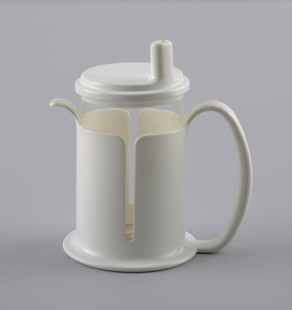 Mug And Lid (Sweden); Designed by Ergonomi Design Gruppen (Sweden); Manufactured by RFSU Rehab; plastic, molded; Gift of RFSU Rehab; 1982-76-6-a/c