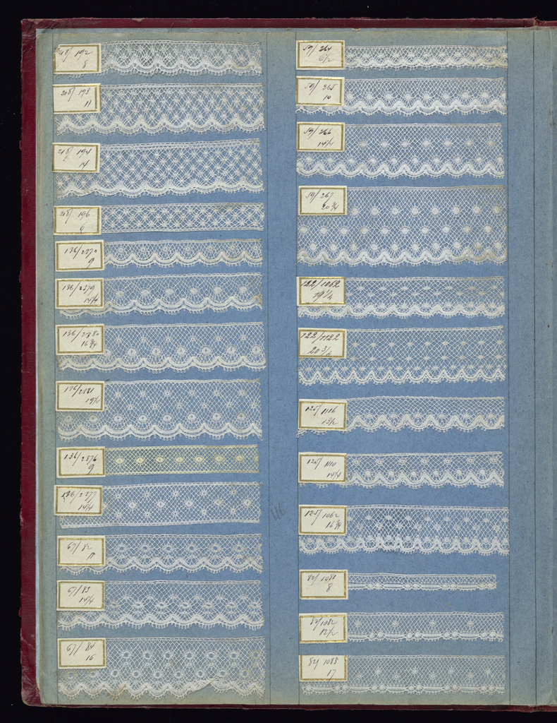 <ref name=CH>{{cite web |url=https://www-6.collection.cooperhewitt.org/objects/18800781/ |title=Sample Book (possibly England) |author=Cooper Hewitt, Smithsonian Design Museum |accessdate=20 December 2025 |publisher=Smithsonian Institution}}</ref>