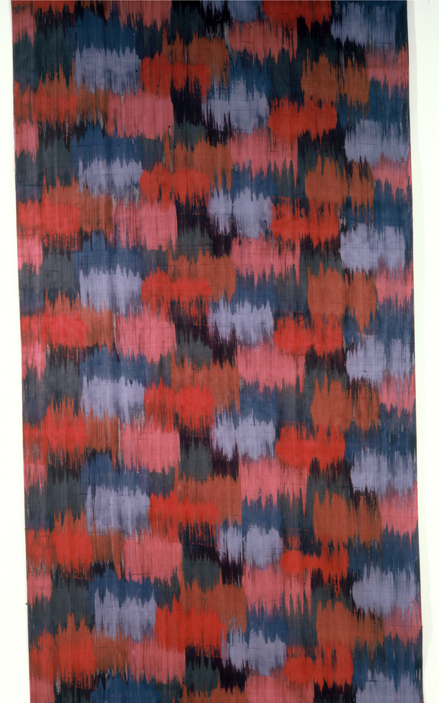 This is a Textile. It was designed by Mark Feigenbaum and Ray Wenzel and company: Marc/Raymond. It is dated 1983 and we acquired it in 1983. Its technique is painted. It is a part of the Textiles department.
