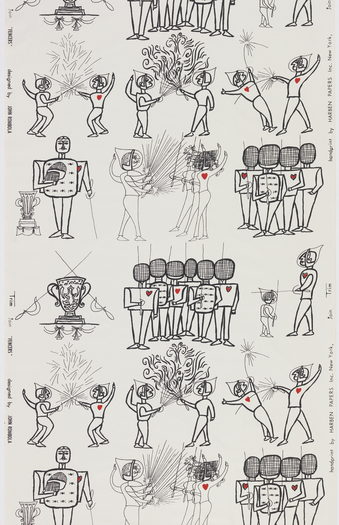 Sidewall, Fencers; Designed by John Rombola (American, b. 1933); Manufactured by Harben Papers, Inc.; USA; screen printed; 162.5 x 76 cm (64 x 29 15/16 in.); Gift of John Rombola; 1984-102-3