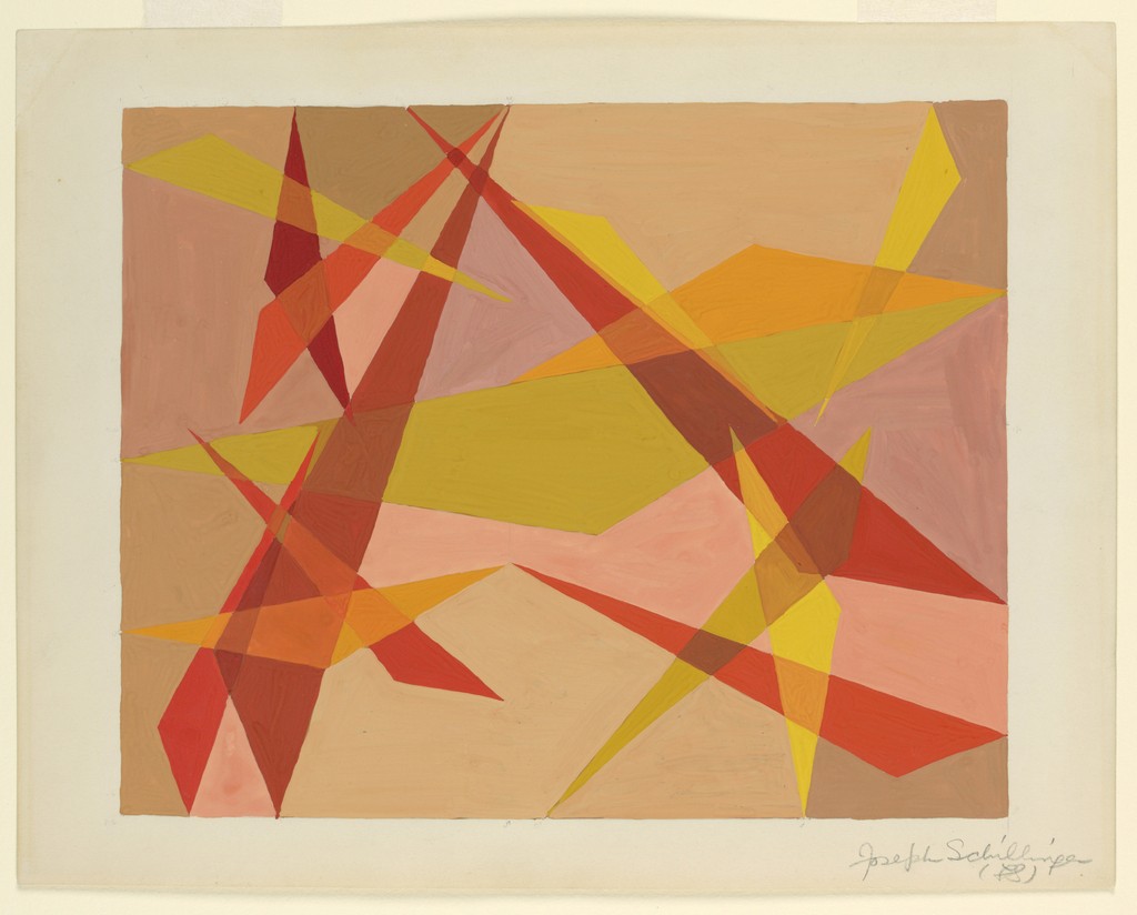 This is a Drawing. It was designed by Joseph Schillinger. It is dated ca. 1934 and we acquired it in 1984. Its medium is watercolor on paper. It is a part of the Drawings, Prints, and Graphic Design department.