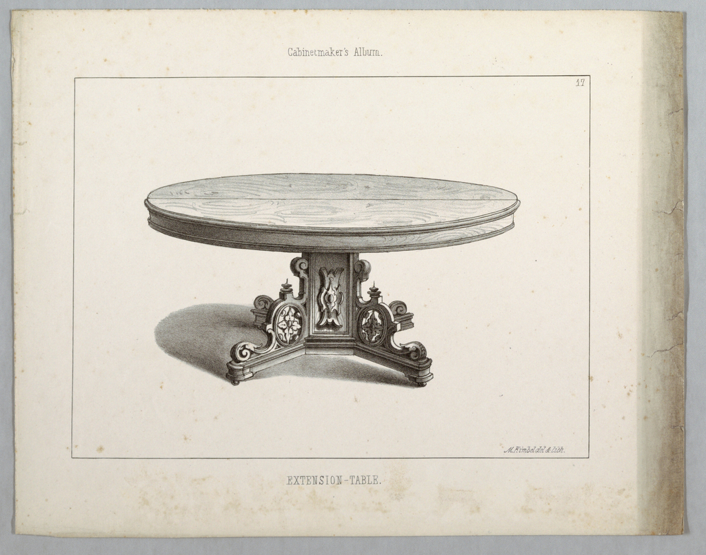 Print, Monthly Cabinet Makers Album: Extension Table; Designed by M. Kimbel; USA; 1984-124-24-17