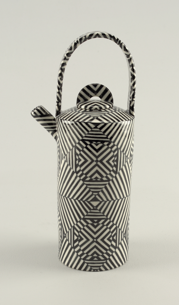 This is a Teapot and lid. It is dated 1984 and we acquired it in 1984. Its medium is glazed porcelain. It is a part of the Product Design and Decorative Arts department.