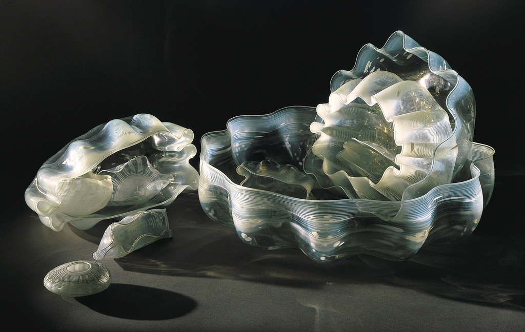 White Seaform Group Vessel; Dale Chihuly (American, b. 1941); USA; blown glass; Overall: 7.5 x 12.5 x 11 cm (2 15/16 x 4 15/16 x 4 5/16 in.); Gift of Dr. and Mrs. Joseph Chazen; 1984-137-7