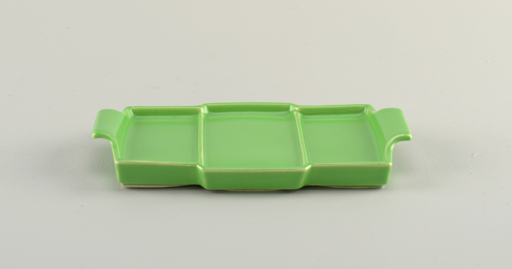This is a tray. It is dated ca. 1930 and we acquired it in 1984. Its medium is glazed earthenware. It is a part of the Product Design and Decorative Arts department.