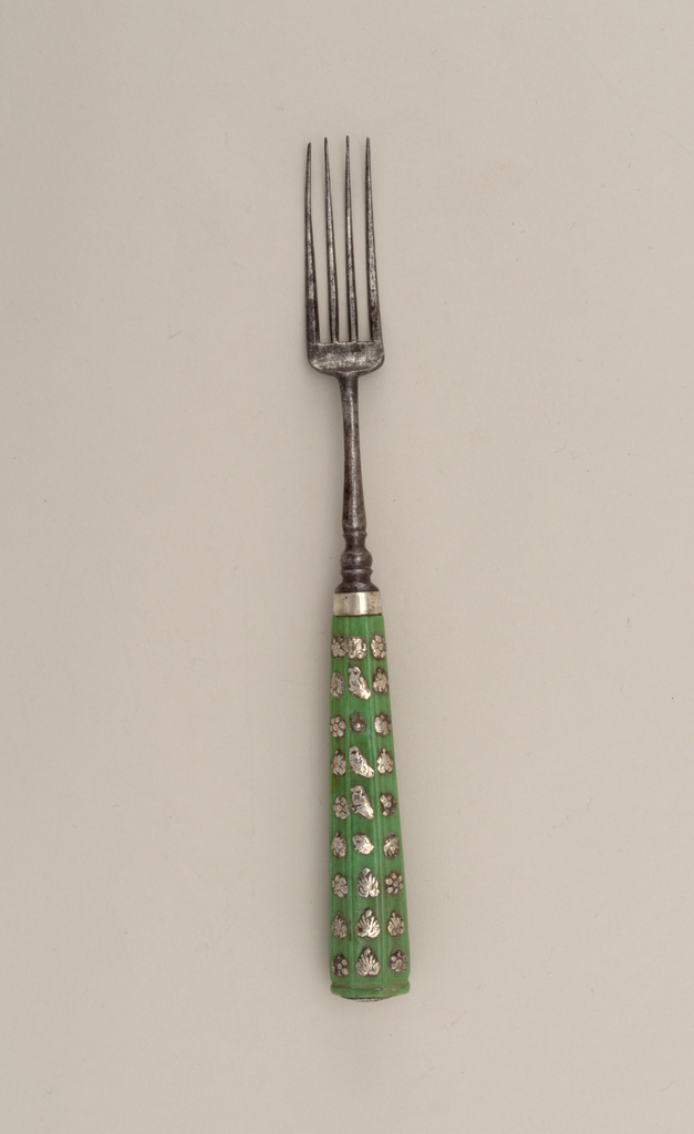 <ref name=CH>{{cite web |url=https://www-6.collection.cooperhewitt.org/objects/18803719/ |title=Fork with Green-stained Ivory and Silver Applieque Handle Fork |author=Cooper Hewitt, Smithsonian Design Museum |accessdate=20 December 2025 |publisher=Smithsonian Institution}}</ref>