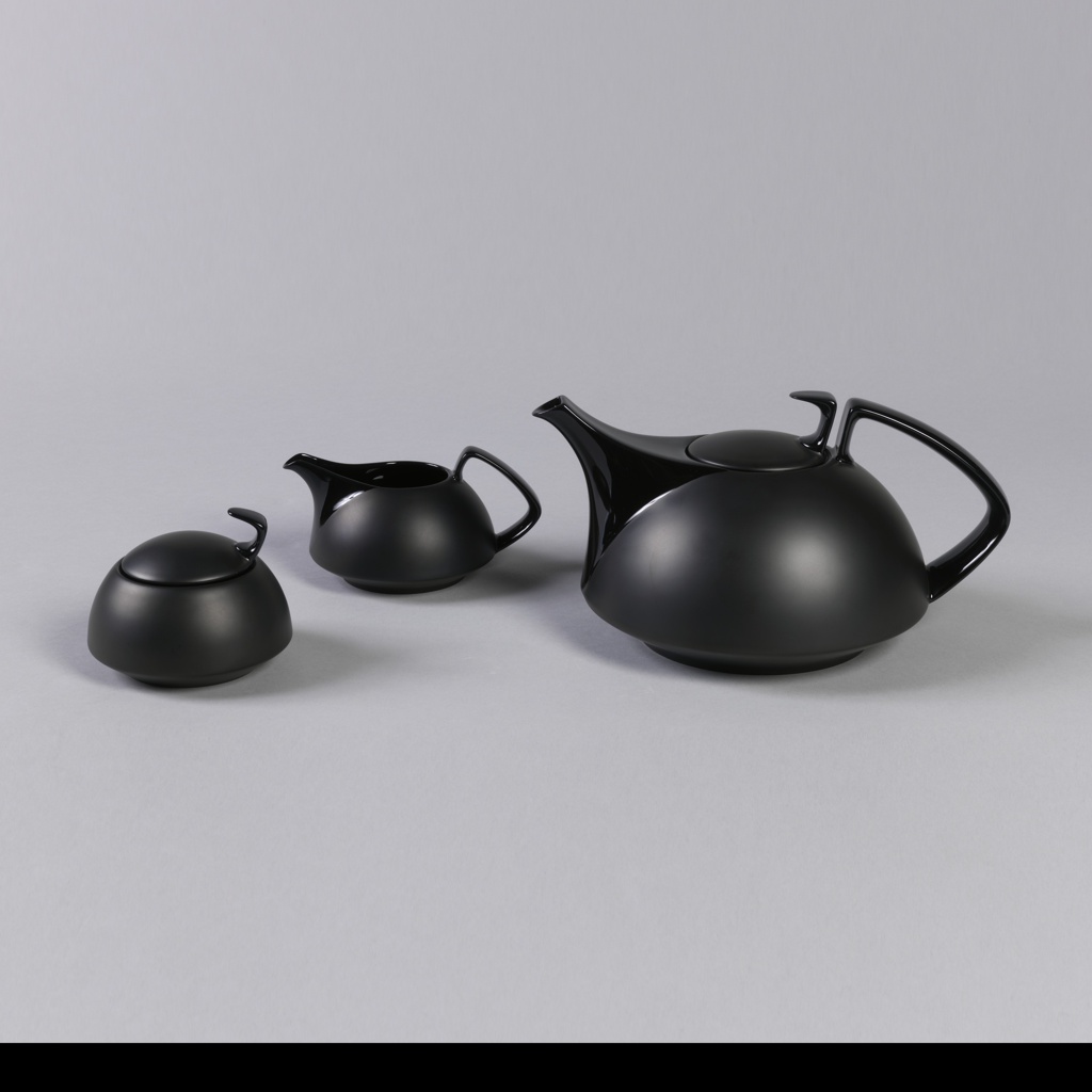 This is a Sugar bowl and lid. It was designed by Catherine de Souza and from the office of Walter Gropius/Louis McMillen and made by Rosenthal Glas und Porzellan Aktiengesellschaft and made for The Architects Collaborative (T.A.C.). It is dated 1969 and we acquired it in 1985. Its medium is glazed porcelain. It is a part of the Product Design and Decorative Arts department.