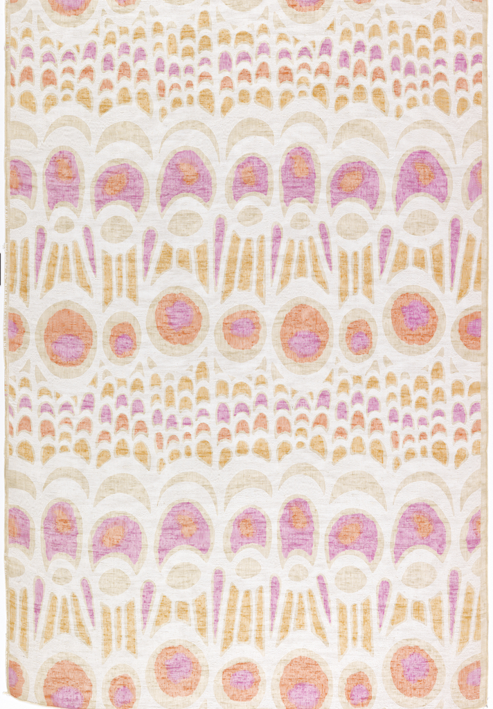 This is a Textile. It is dated 1968 and we acquired it in 1985. Its medium is linen and its technique is screen printed using four screens. It is a part of the Textiles department.